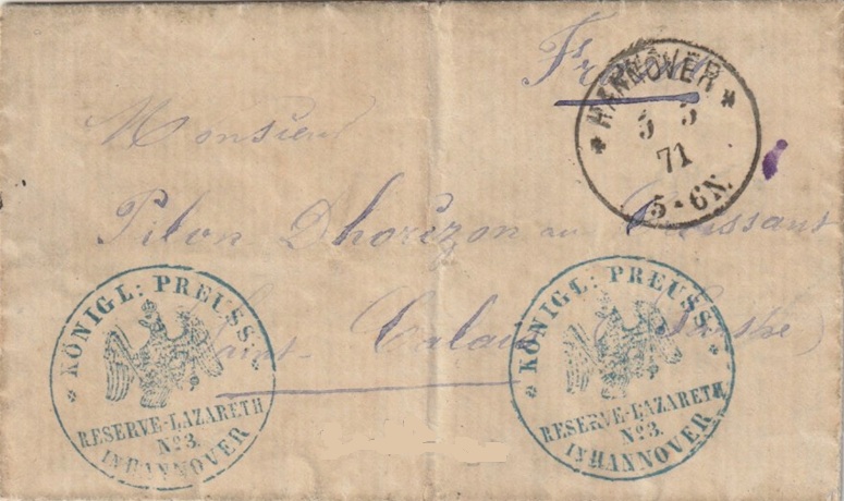 Lettre d'un prisonnier envoyée de HANNOVER (Allemagne) à destination de Saint-Calais Sarthe le 3 mai 1871