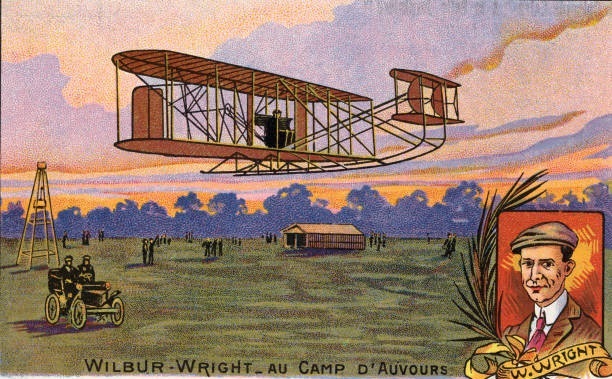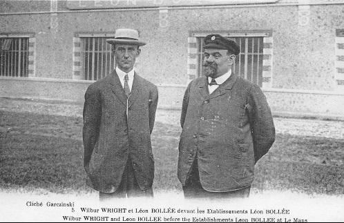 En 1908 invité par le constructeur automobile Manceau Léon BOLLEE , WILBUR WRIGT réalise au CAMP d'AUVOURS de nombreux essais de vol pour la première fois en EUROPE à bord de son Flyer III .Il battra le record de durée de vol .