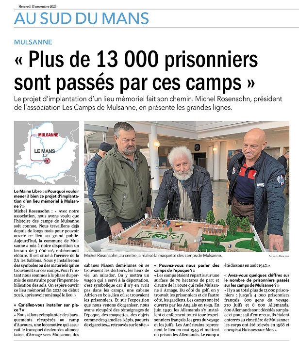 Durant ce conflit on trouvait des camps de prisonniers en SARTHE COUDRECIEUX : Camp d' internement pour Tsiganes et Juifs , ce camp (La Verrerie ) a été crée en 1940 près du château de la Pierre Les conditions de vie dans ce camp sont tellement lamentables que le préfet PICOT demanda aux allemands la mise à disposition du FRONTSTALAG désaffecté à MULSANNE afin de fermer ce caamp et d'y transférer les prisonniers .