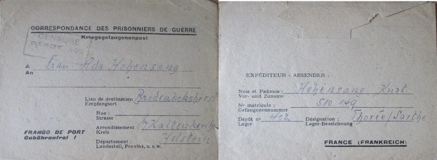 Ce camp passe sous le contrôle de l' armée française le 6 juillet 1945 sous le nom de PGA 402 . " Lettre envoyée par un prisonnier allemand à destination de l' Allemagne"