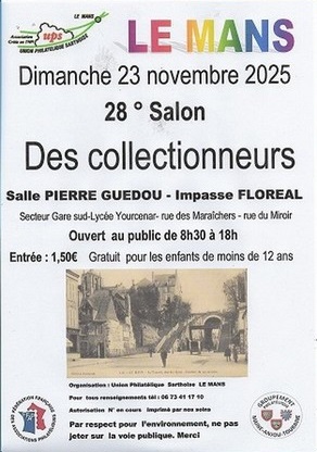 L' Union Philatélique Sarthoise organisera son 28 ° salon des collectionneurs le dimanche 23 novembre 2025.