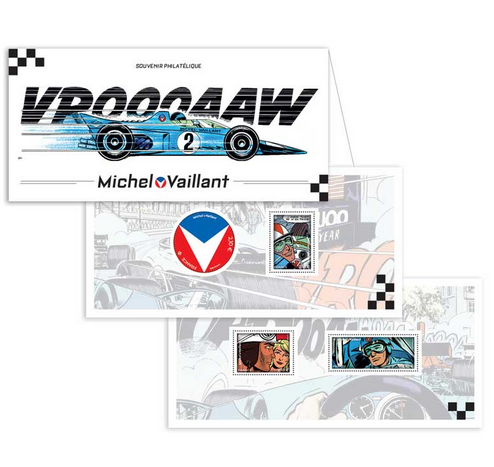 Pour la commémoration des 60 ans de Michel Vaillant, la Poste émet le 21 Septembre 2025 un bloc de timbres ainsi qu'un souvenir philatélique.