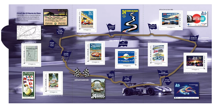Pour le centenaire des 24 Heures du Mans, célébré en 2023, la Poste a émis un collector de 8 timbres commémoratifs.