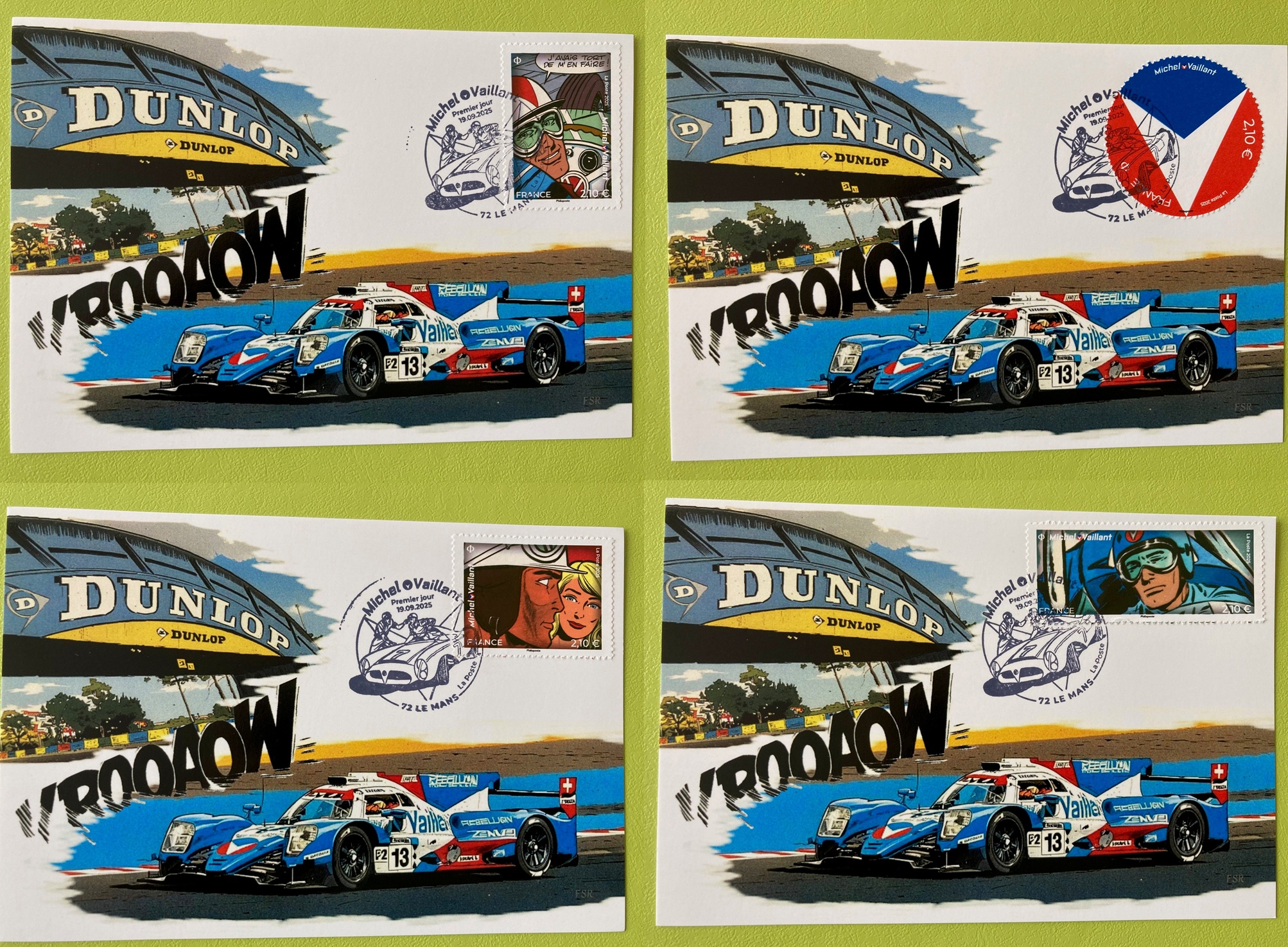 Pour la commémoration des 60 ans de Michel Vaillant, la Poste émet le 21 Septembre 2025 un bloc de timbres ainsi qu'un souvenir philatélique. Le jour J, une oblitération spécifique sera également disponible.