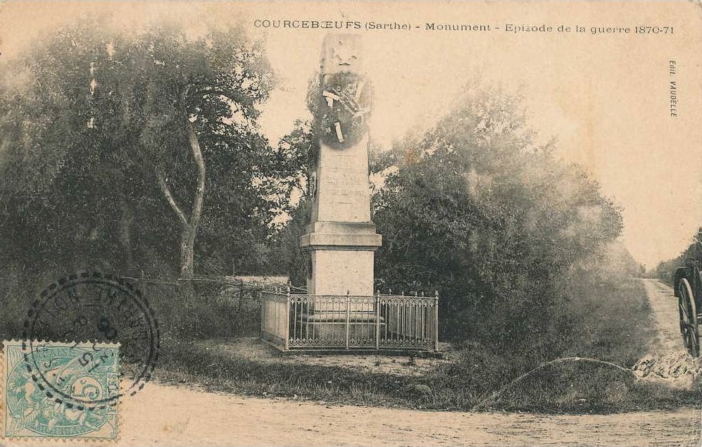 COURCEBOEUFS : Monument à la mémoire des soldats morts au combat qui eut lieu le 12 janvier 1871. Une rue de ce village porte le nom d'un des soldats morts pendant cet affrontement.