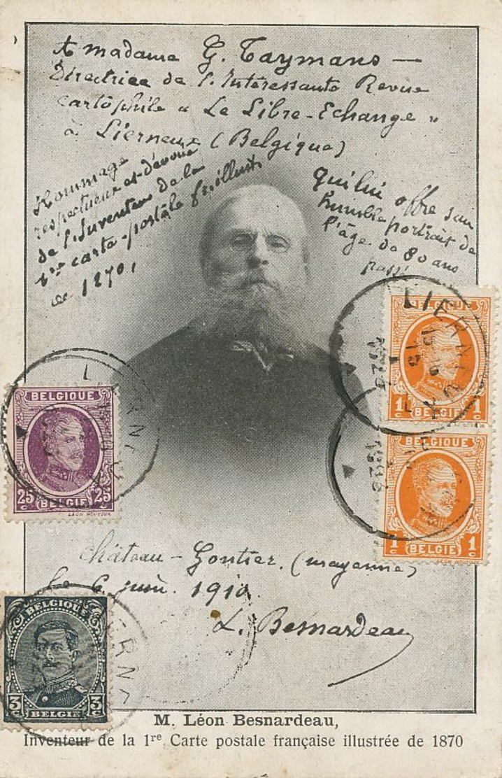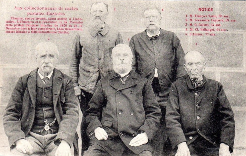 C'est Léon BESNARDEAU ( 1829-1914) libraire à Sillé Le Guillaume qui inventa la première carte postale pour la correspondance.