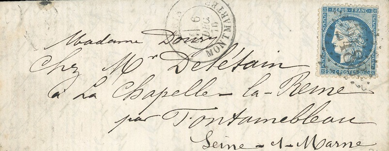 L'Armée de La LOIRE, ballon du siège parti de la gare du NORD ' PARIS" le 31 décembre 1870. A atterri le même jour à MONTBIZOT.