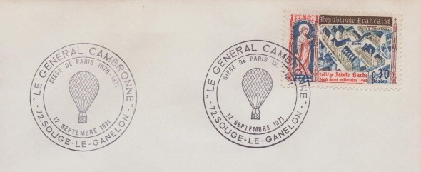 Le CAMBRONNE, parti de la gare de L'EST (PARIS) le 28 janvier 1871 a atterri le même jour à SOUGE Le GANELON.