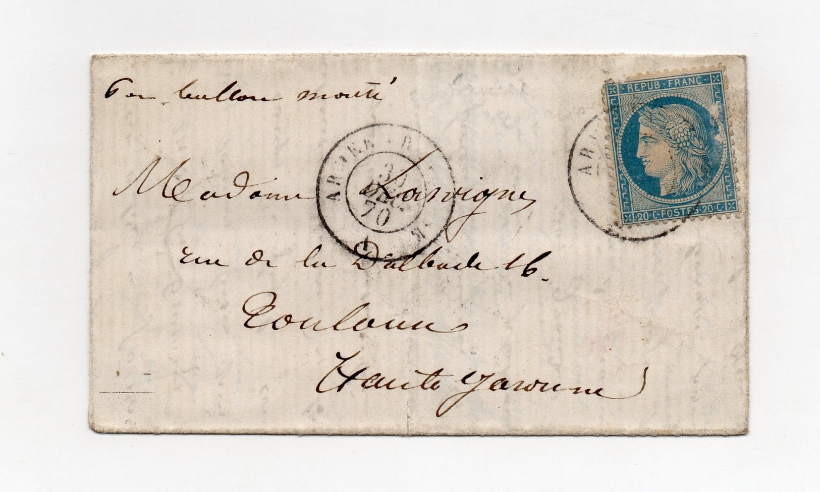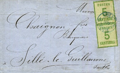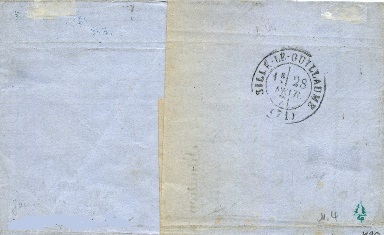 Dos de la lettre cachet d'arrivée à SILLE Le GUILLAUME .