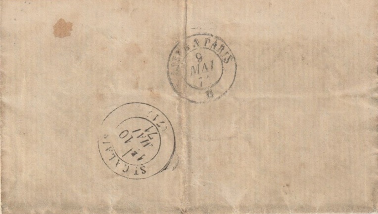 Au dos de cette lettre cachet d'arrivée à Saint -Calais le 10 mai 1871