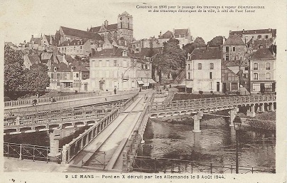 De nos jours que reste t'il au MANS de cette guerre. Du pont en X , il reste un pilier que l'on peut voir au Jardin des Tanneries et des cartes postales. Il a été détruit par les allemands le 8 août 1944