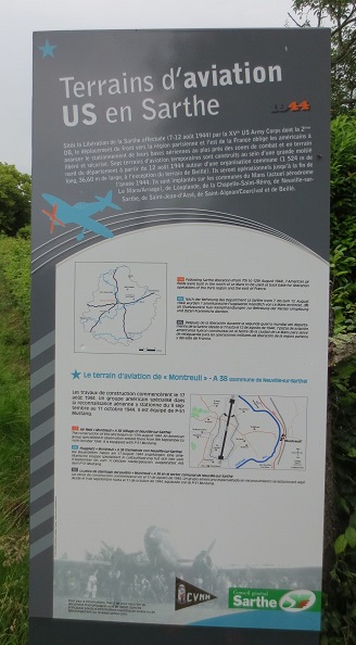 Terrains d' aviation en SARTHE Peu de temps après la libération du MANS , l'armée Américaine installa des terrains d'aviation en Sarthe . 7 aérodromes américains ont été basés en Sarthe : A - 35 Arnage A - 36 Louplande A - 37 La Chapelle saint Rémy A - 38 Neuville sur Sarthe A - 43 Saint Jean d'Assé A - 44 Saint - Aignan A - 49 Beillé