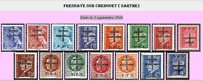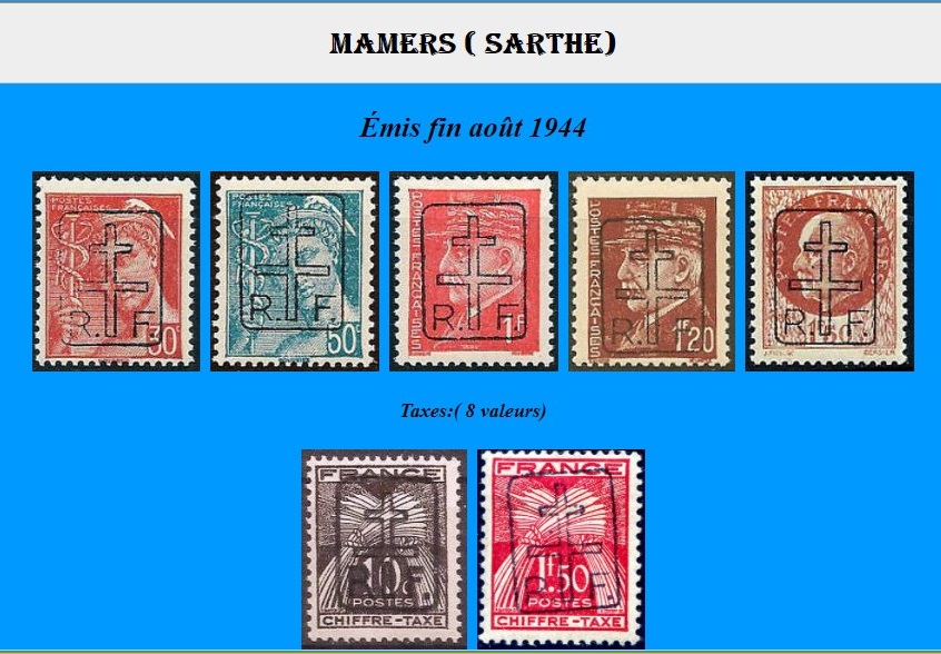 Lors de la Libération 2 villes de La Sarthe ont émis des timbres surchargés. MAMERS